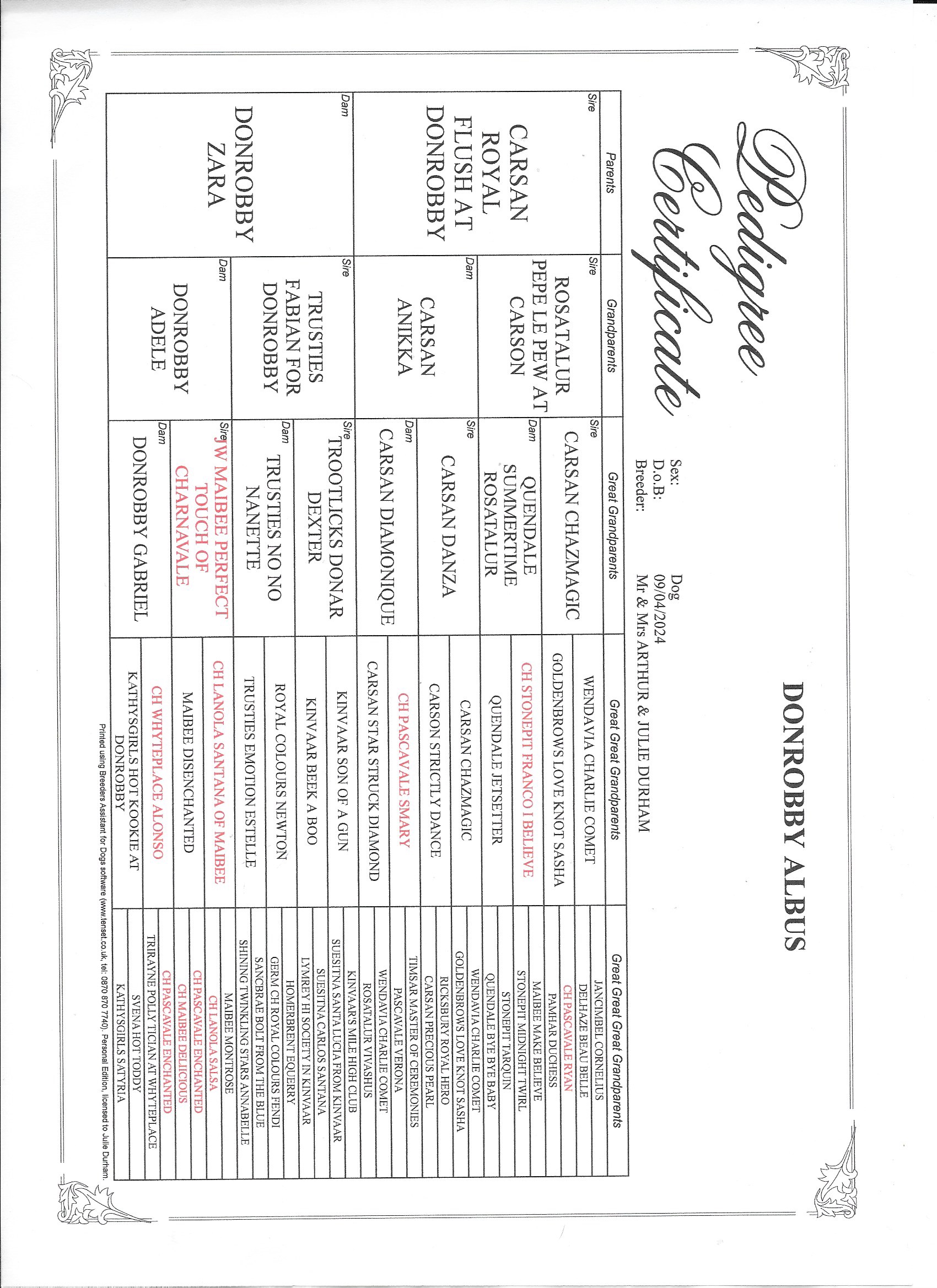 View PEDIGREE Certificate